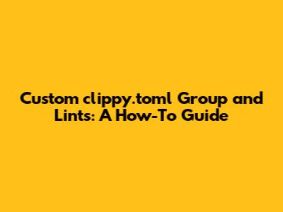 Custom `clippy.toml` Group And Lints: A How-To Guide